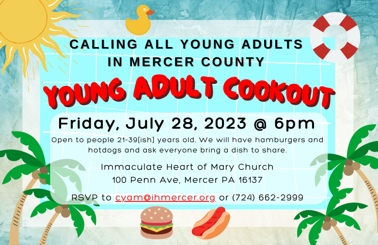 Calling all Young Adults of the Mercer Deanery! Immaculate Heart of Mary Parish will be hosting a cook-out for all young adults (ages 21-39[ish]) on Friday, July 28, 2023 beginning […]